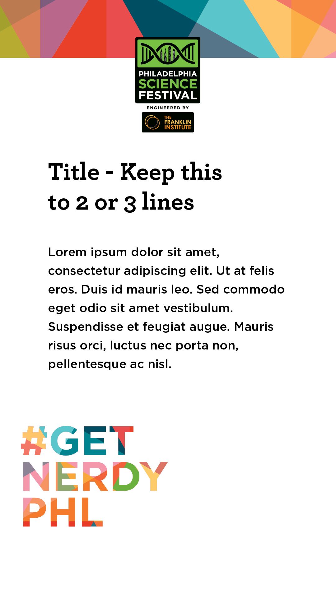 The branding used in this template were originally created by Barbara Chotiner, Graphic Design Manager at The Franklin Institute. I took the brand assets and created this Instagram story template in Photoshop so the Social Media manager could add her own text and images independently.